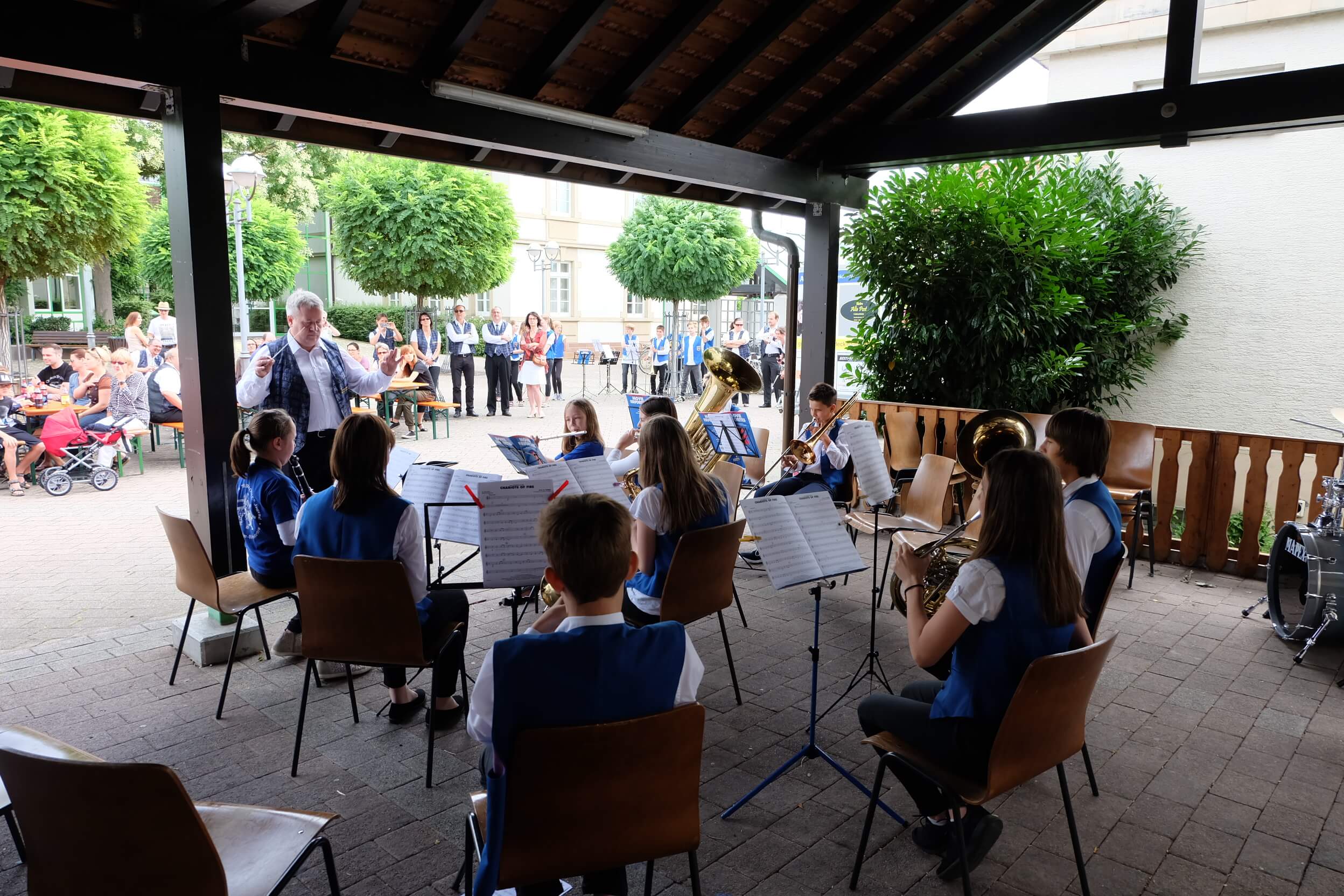 Mal ehrlich. Über das Wetter gibt es viele Meinungen. Mal zu heiß oder zu kalt, mal regnerisch oder zu trocken. Irgendwie passt es nie. Könnte man meinen. Am letzten Sonntag passte es wunderbar. Für den Baggersee zu kalt, für die Sonntags-Matinee des Musikvereins genau richtig. So trafen sich dann auch auf dem Rathausplatz eine stattlich Anzahl von Zuhörern. Eine gute Mischung aus treuem Stammpublikum und neuen Gästen.